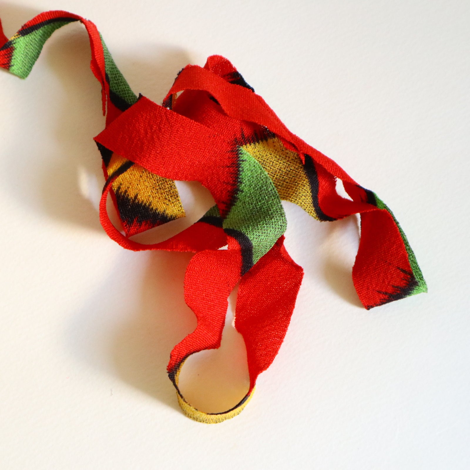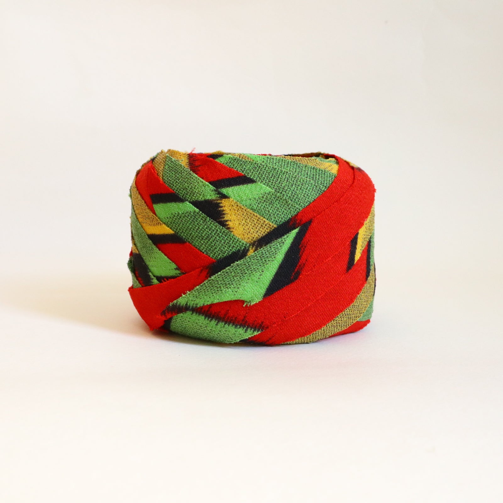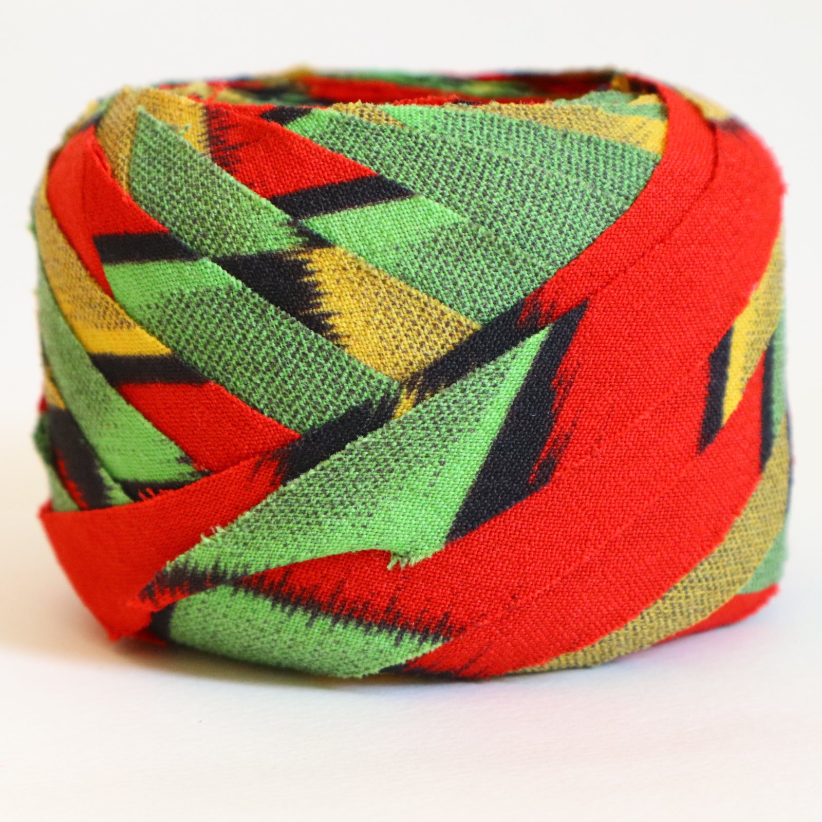 赤に黄色緑の幾何学柄・交織(Y02509005)